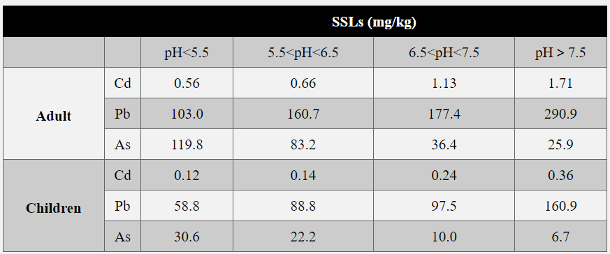 表1 基于多途径暴露和生物可及性校正的农区土壤筛选值(SSLs)