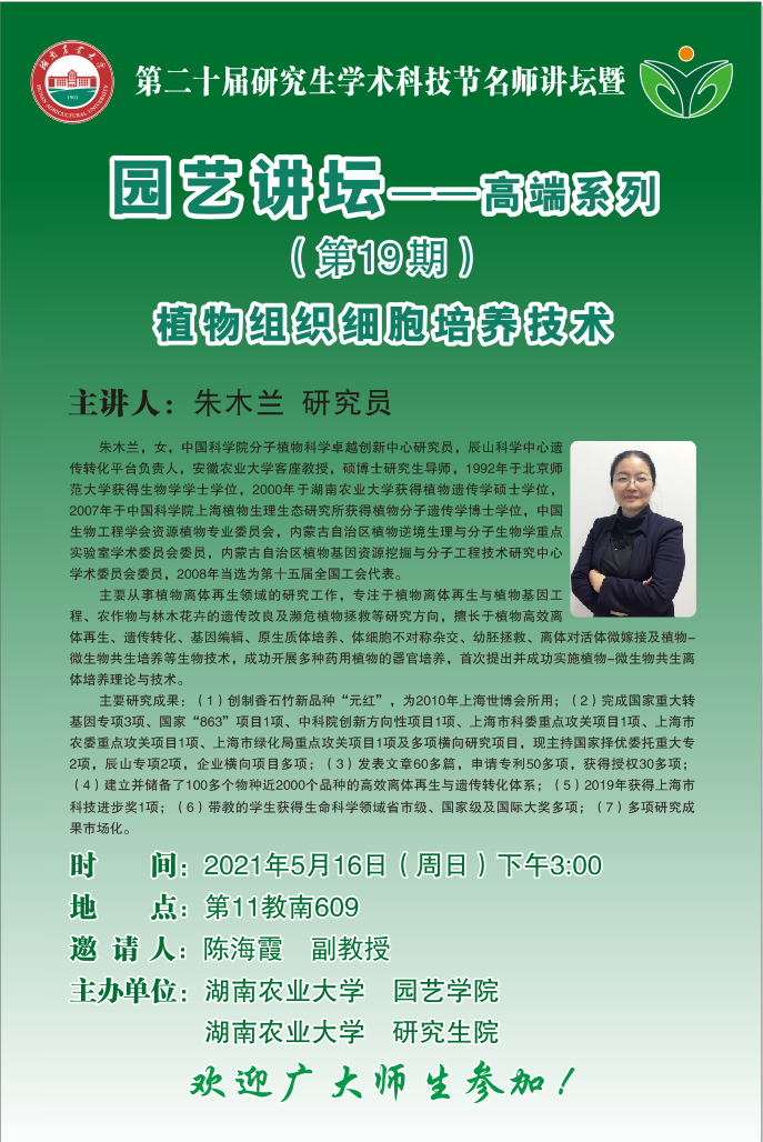 园艺讲坛--高端系列:植物组织细胞培养技术