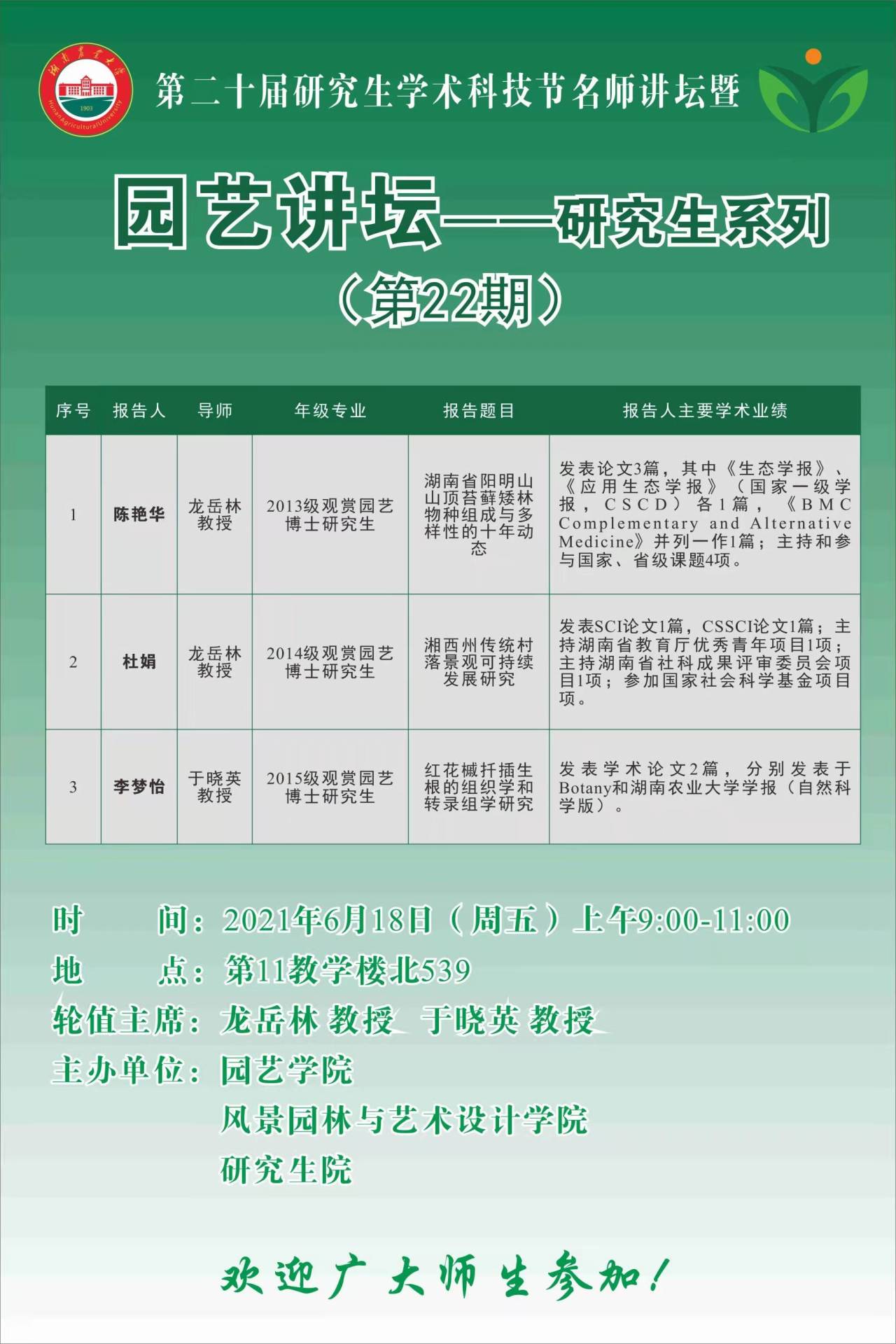 园艺讲坛--研究生系列(第22期)