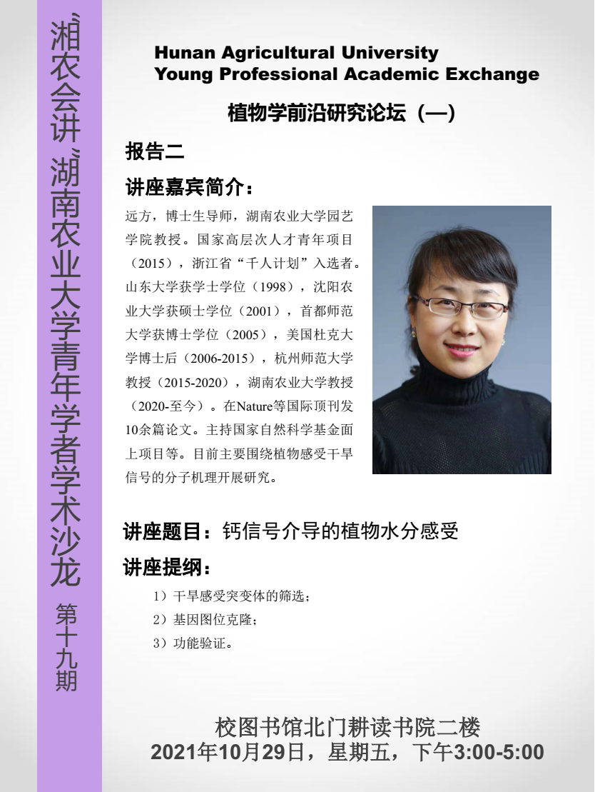 植物学前沿研究论坛(一)受体激酶FER与根部微生物识别与防控