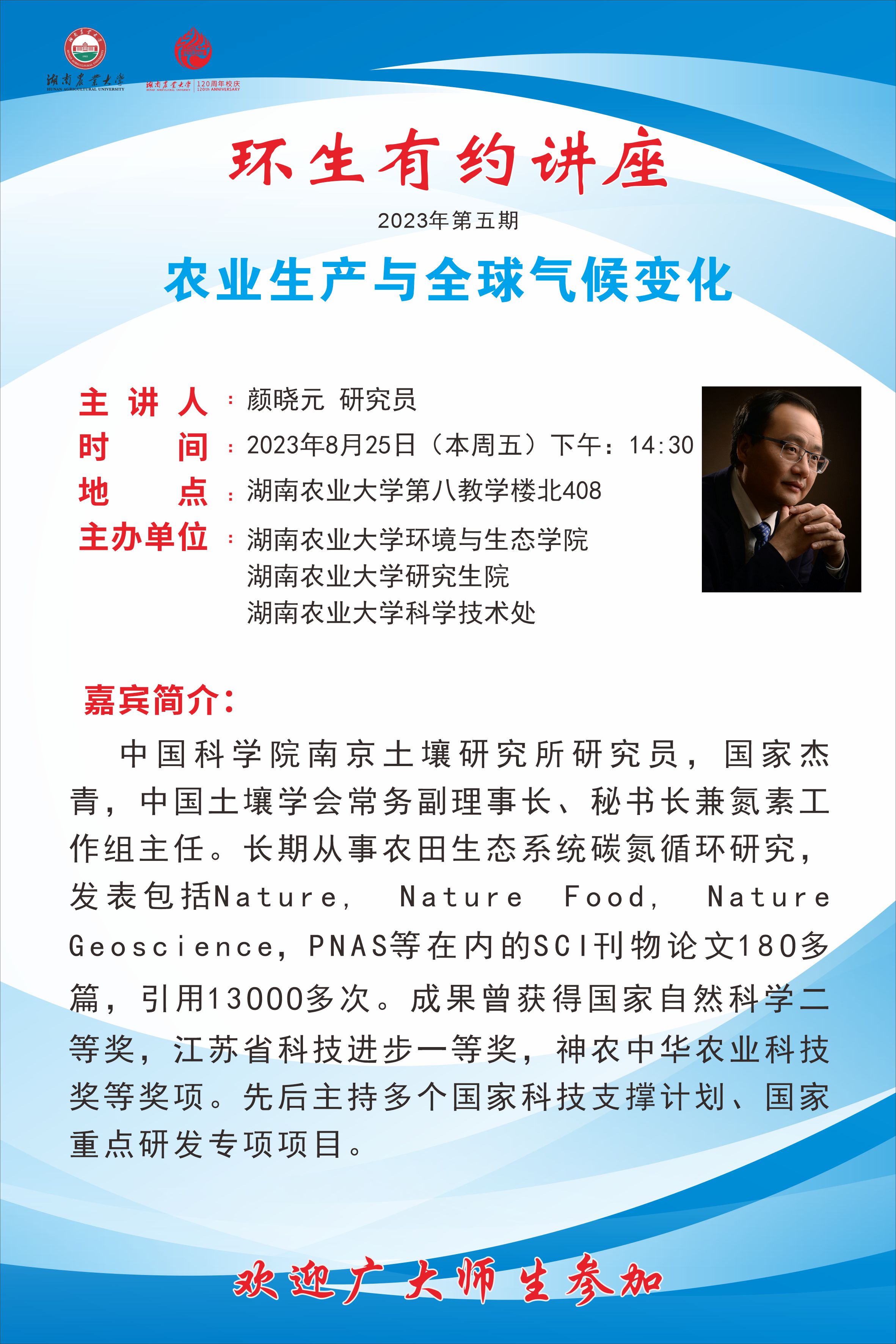 “环生有约讲座”第五期-农业生产与全球气候变化
