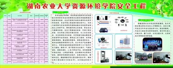 湖南农业大学安全工程专业始建于2005年,依托于环境科学与工程湖南省重点学科;2010年开始招生,2014年高质量通过本科专业办学水平评估,2018年开始招收专业学位硕士(资源与环境领域专业硕士授权点含安全工程),2019年高质量通过本科专业审核式评估。