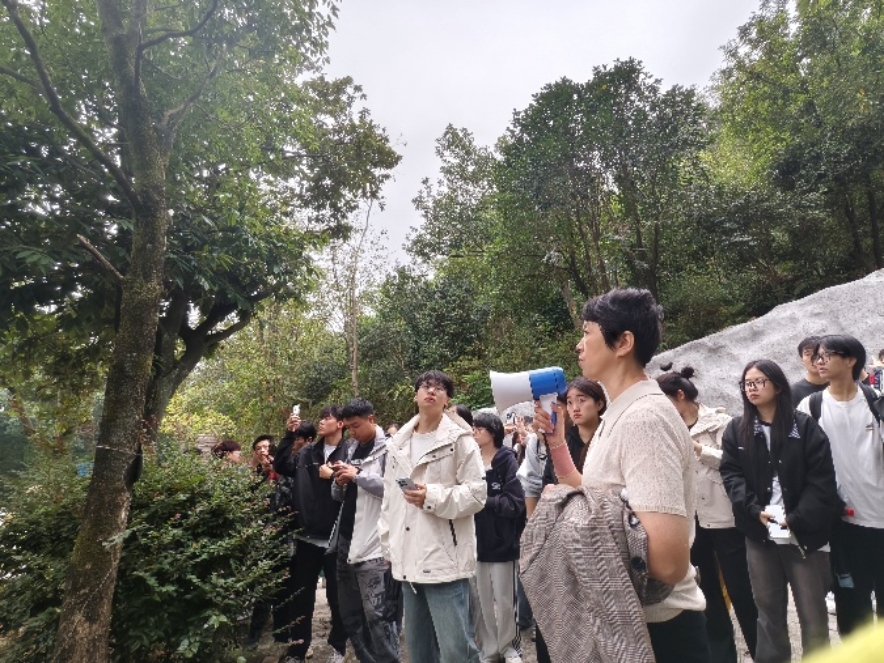 在2025年10月13日至17日的实习期间,同学们于南岳植物园认识和辨认了植物资源及其对大气污染的响应特征,寻找了对大气、土壤、水环境具有净化能力的植物资源;认识到了农村生活污水的特点、资源化及生态处理技术;实地观察了地质环境斜坡失稳产生原因、过程、结果及其防治措施;认识了水土流失及流域非点源污染的产生特点、迁移过程削减的管理和技术特征手段;深入有机茶厂学习产地环境质量评估与土壤类型辨识,并在原始次森林区开展样方调查,掌握了生物多样性监测与生态质量评价方法。