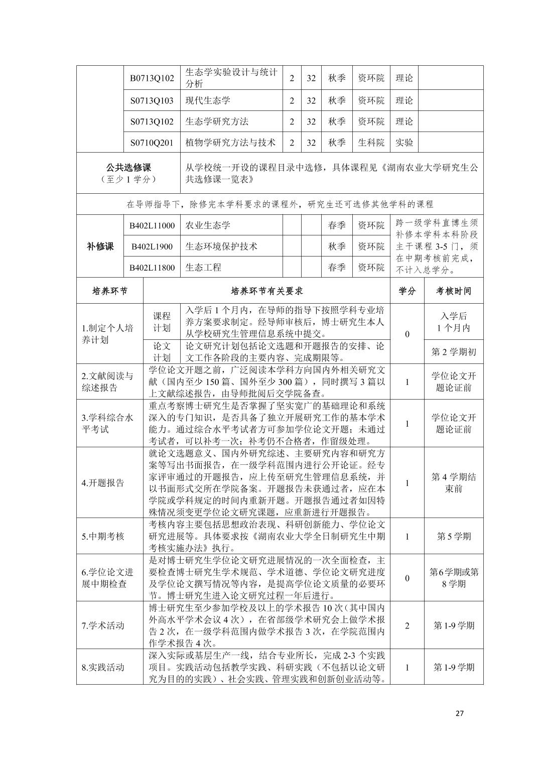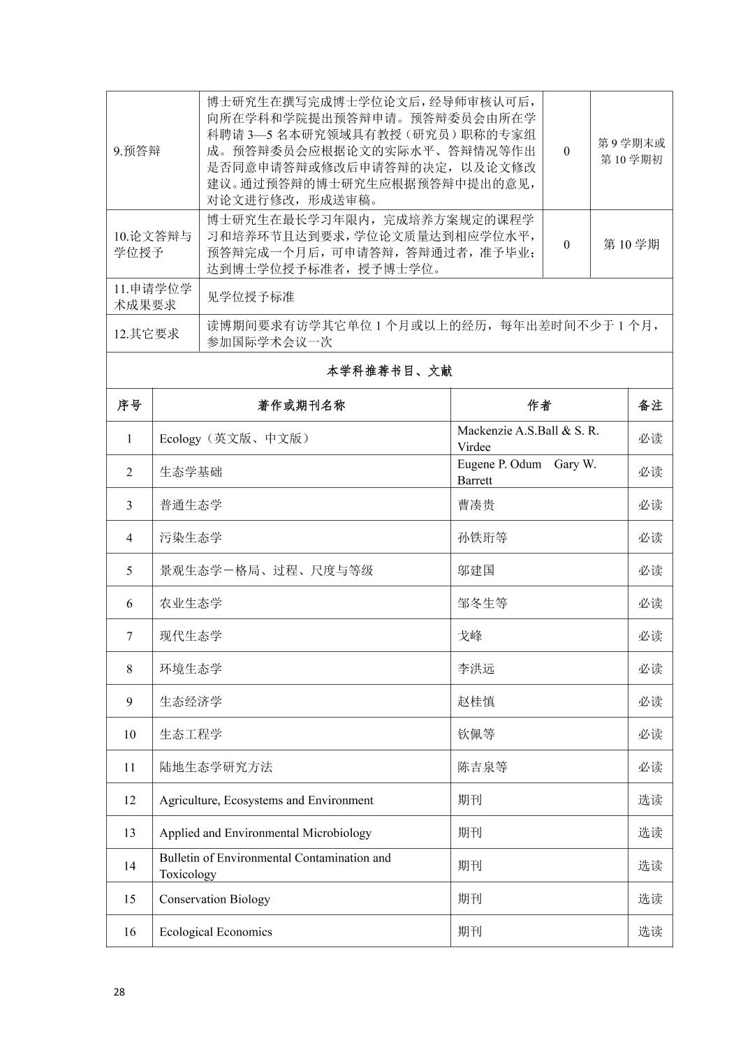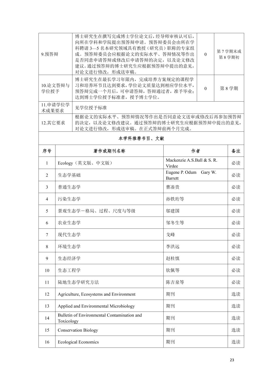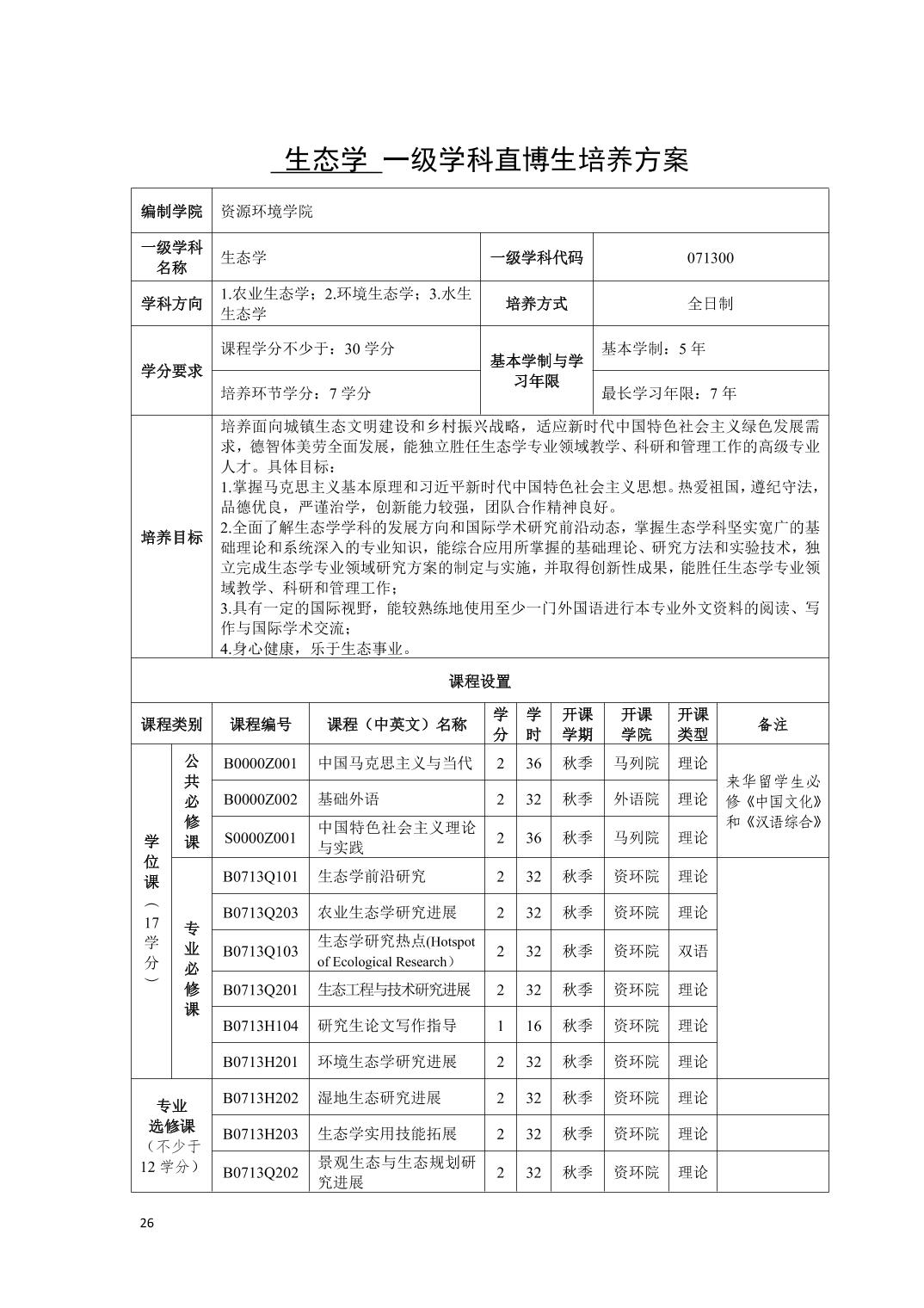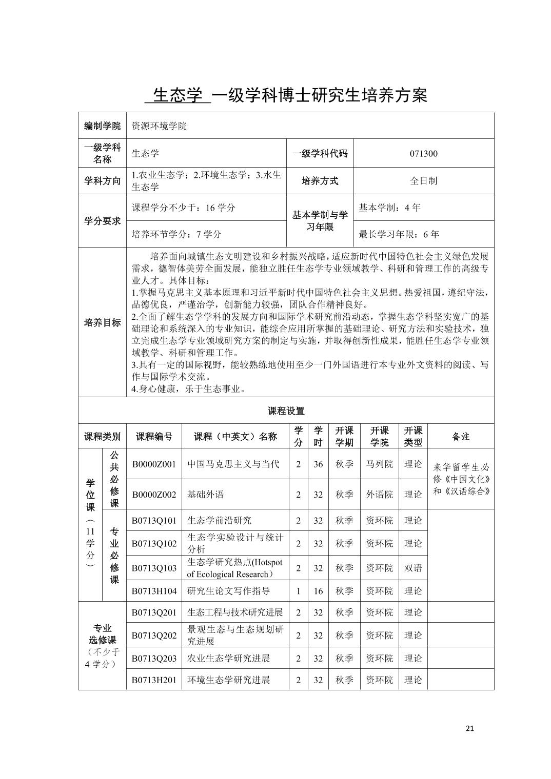 生态学 学科学术型博士研究生培养方案(2021版)