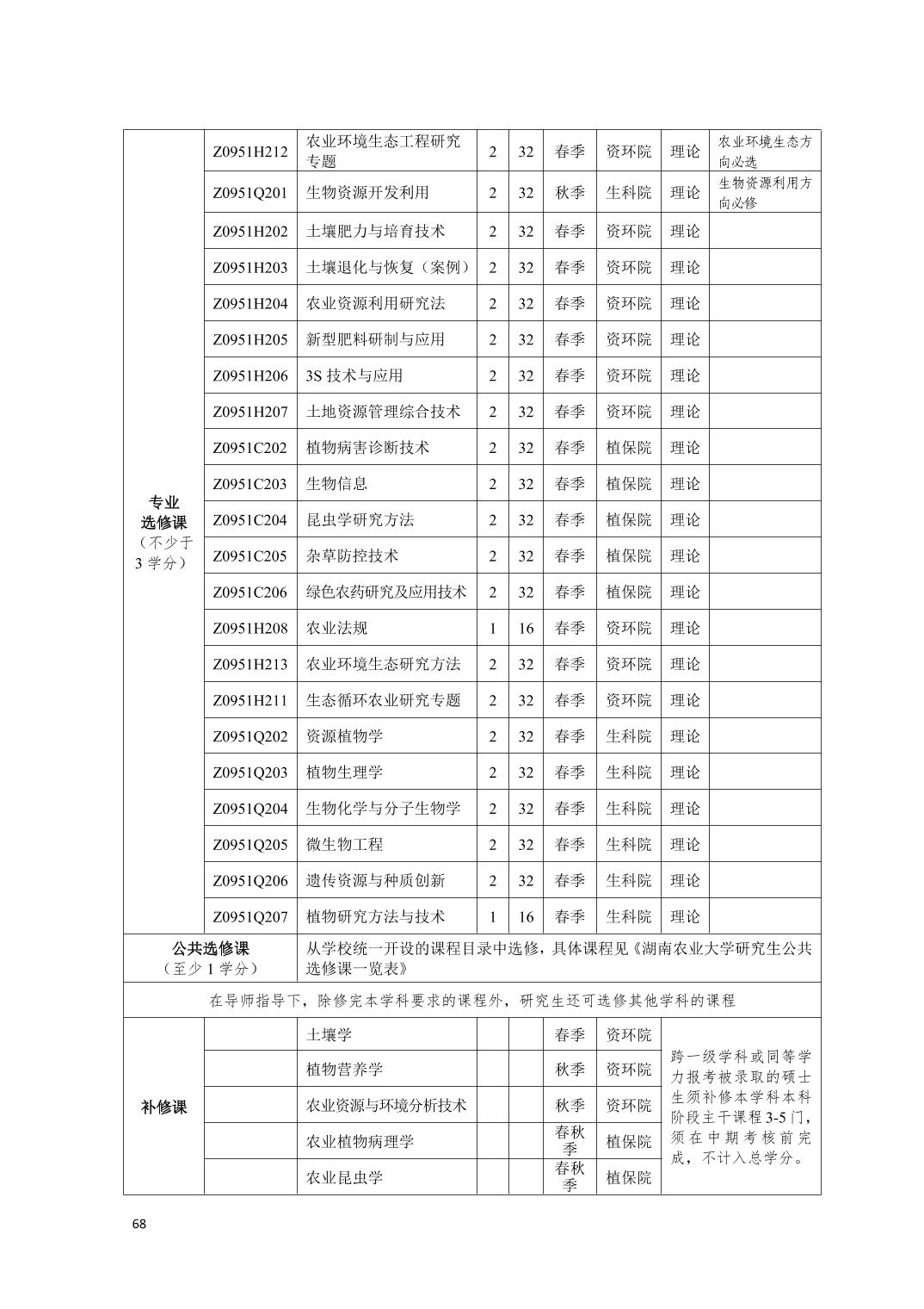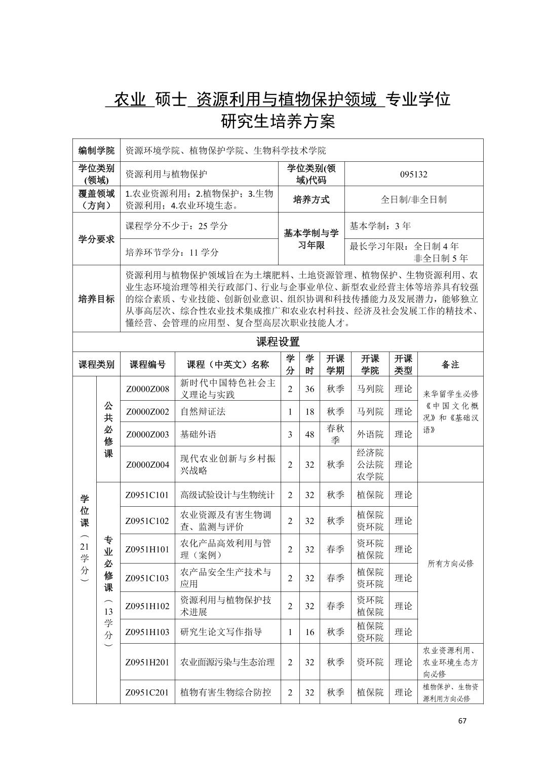 农业硕士专业学位资源利用与植物保护领域培养方案(2021版)
