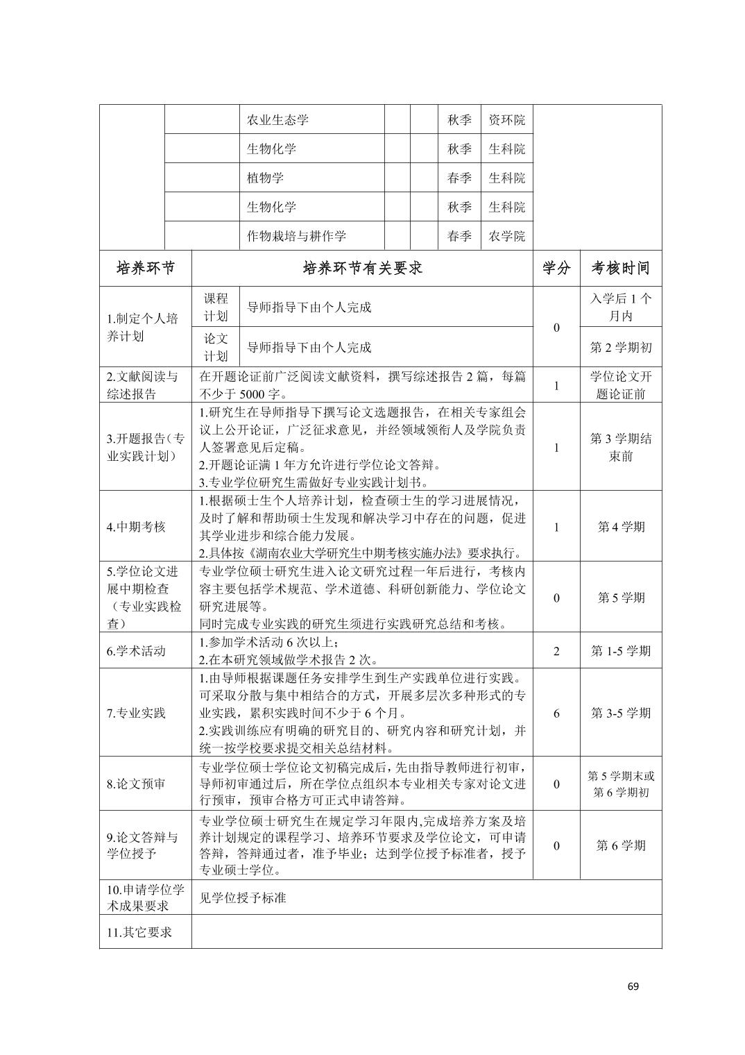 湖南农业大学学术学位研究生培养总体要求(2025)