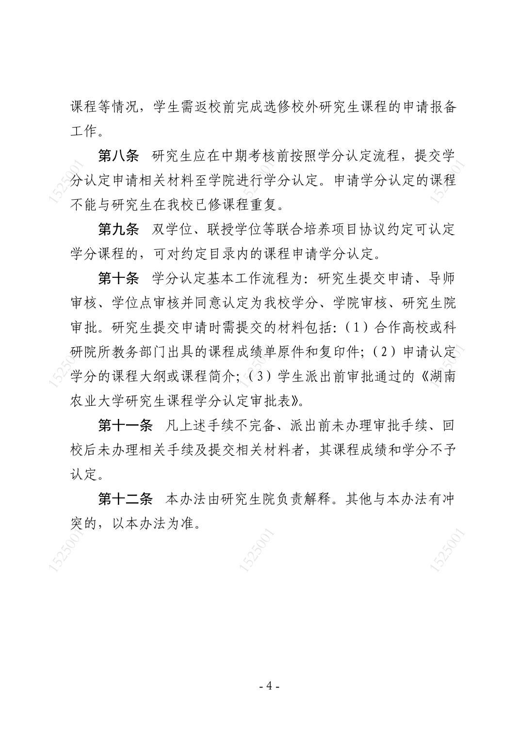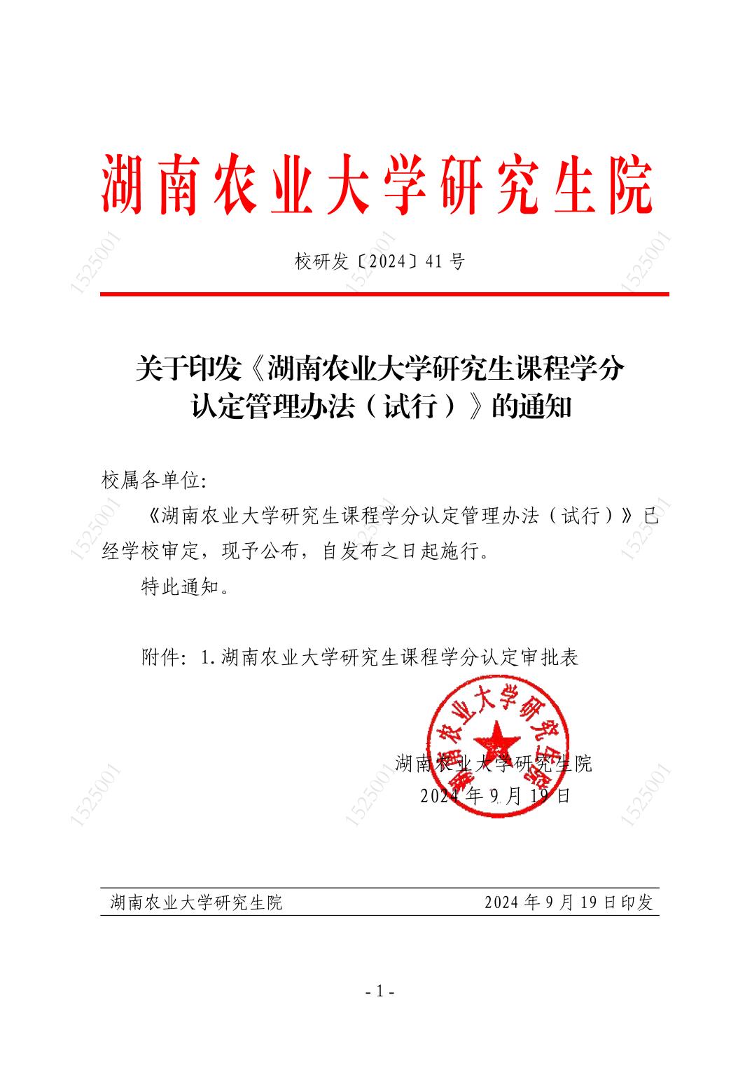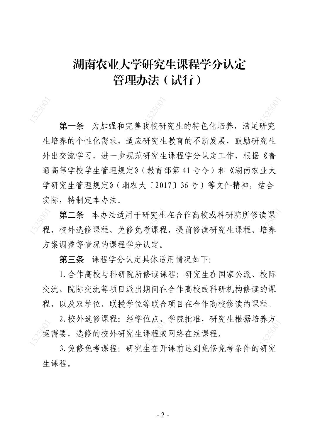 湖南农业大学研究生课程学分认定管理办法(试行)
