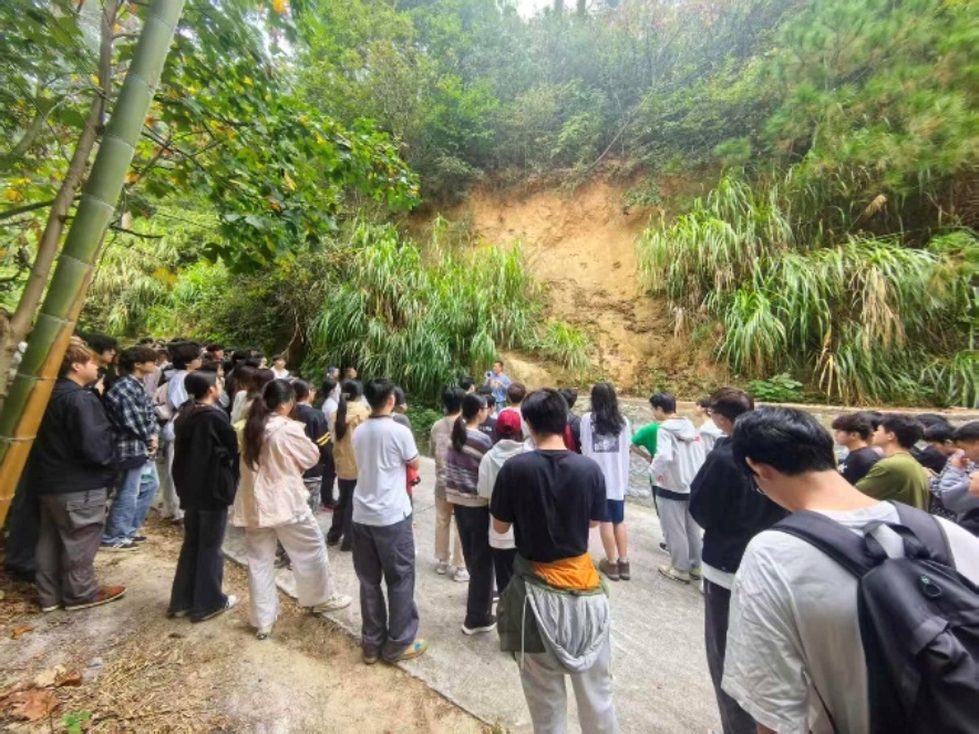 在2025年10月13日至17日的实习期间,同学们于南岳植物园认识和辨认了植物资源及其对大气污染的响应特征,寻找了对大气、土壤、水环境具有净化能力的植物资源;认识到了农村生活污水的特点、资源化及生态处理技术;实地观察了地质环境斜坡失稳产生原因、过程、结果及其防治措施;认识了水土流失及流域非点源污染的产生特点、迁移过程削减的管理和技术特征手段;深入有机茶厂学习产地环境质量评估与土壤类型辨识,并在原始次森林区开展样方调查,掌握了生物多样性监测与生态质量评价方法。