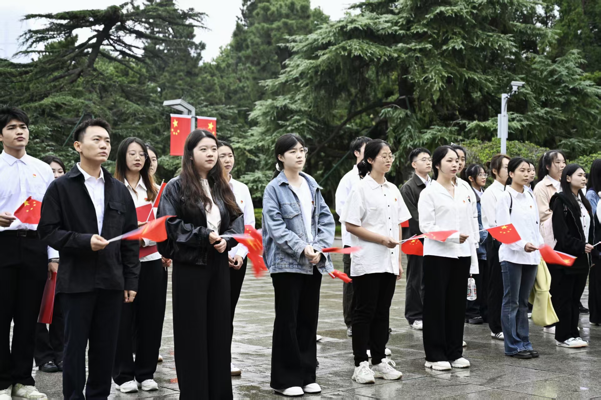 全体党员怀着对先烈的崇敬之情列队站在湖南烈士公园烈士纪念塔前默哀,党员代表缓步上前敬献鲜花,寄托对烈士们的无限哀思。在本科生第三党支部书记邹鑫旺老师的带领下,全体党员重温入党誓词,铿锵有力的誓言回荡在广场,彰显着新时代党员的初心与担当。红色经典诵读环节,4名党员代表领读《可爱的中国》,激昂的文字、真挚的情感引发在场人员强烈共鸣。随后,《歌唱祖国》的旋律响起,全体人员齐声高唱,嘹亮歌声唱响对祖国的深厚感情,既是对革命先烈的深切缅怀,更唱出了新时代青年守护家国的坚定决心。