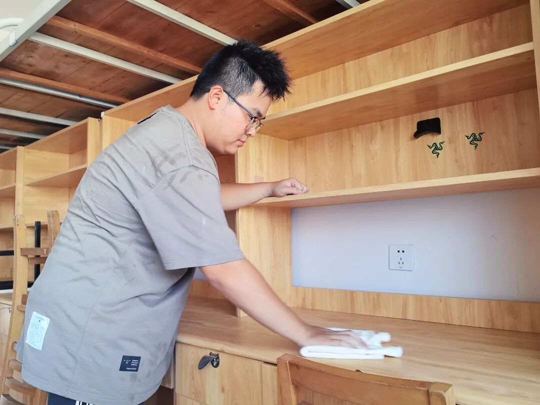 学生党员刘天乐表示:“作为一名党员,能够通过自己的劳动为新生创造一个干净舒适的家,我觉得非常有意义。这不仅是服务同学的实际行动,也是践行入党初心、发挥模范作用的生动体现。希望新生们踏入宿舍时能感受到学校的温暖和我们的心意。”