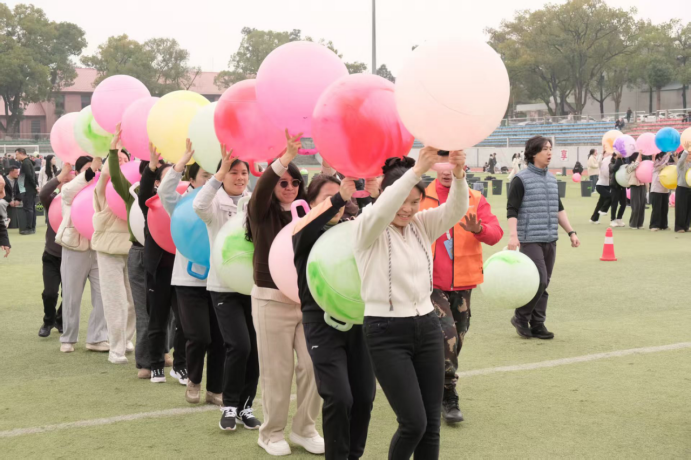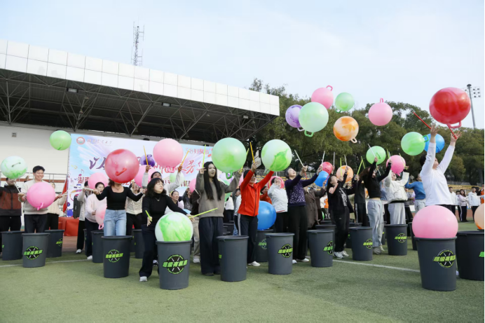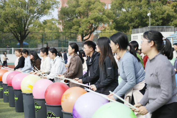 伴随着激昂的鼓点节奏,活动正式开始。学院教职工代表队积极参与、奋勇争先,充分展现了环生巾帼的别样风采。本次活动设置了三大创意舞蹈游戏,将体育运动与趣味活动有机融合。