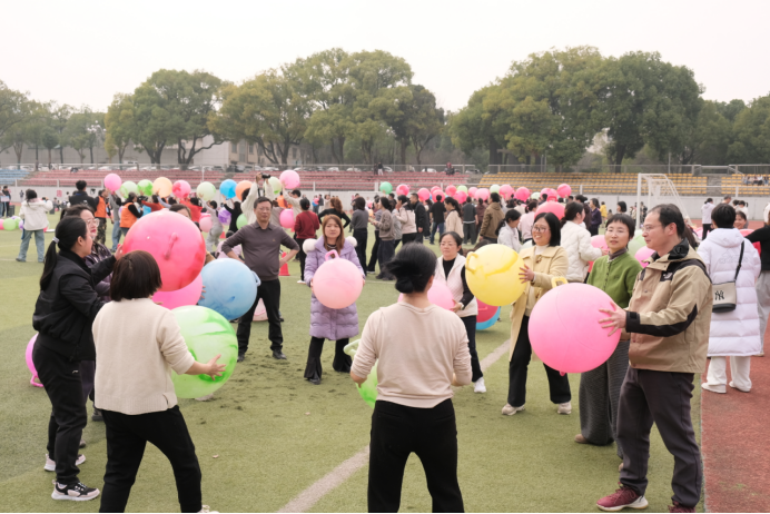 春意渐浓,芳华盛放。为庆祝第116个“三八”国际劳动妇女节,丰富教职工业余文化生活,展现女教职工积极向上、奋发有为的精神风貌,2026年3月5日下午,由校工会主办的“以梦为马 巾帼绽芳华”超级有氧鼓趣味活动在学校东田径场活力开启。学院教职工代表队,与全校各二级工会同仁齐聚一堂,欢度佳节。