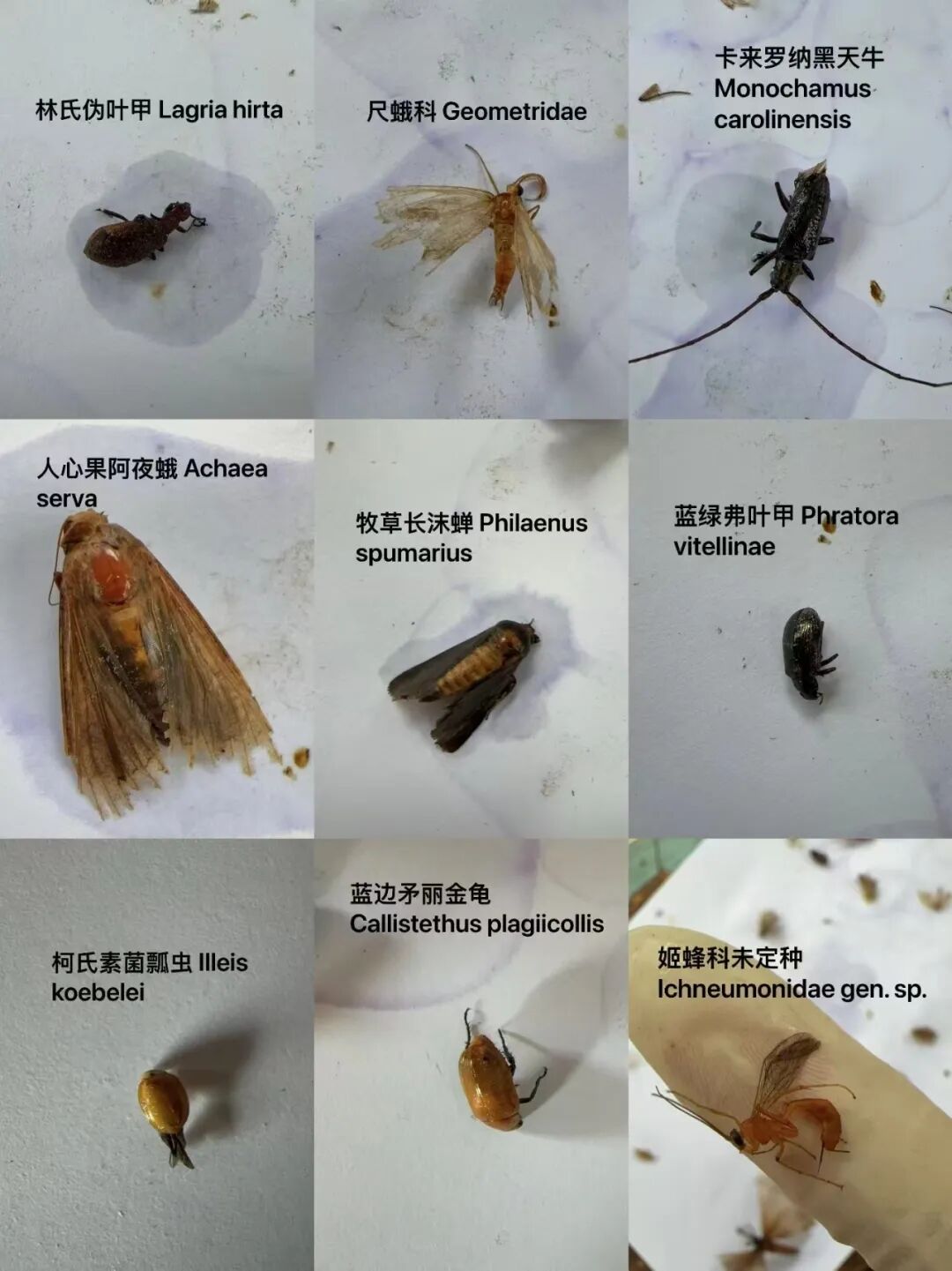 在考察过程中,师生们克服了山区多变的气候条件和复杂的地形环境,在条件和工具有限情况下,共完成有效样线调查10余公里,设置标准观测点9个,各组采集昆虫标本15份,拍摄生态照片100余张.师生们凭借专业能力并利用软件“晓虫”识别昆虫,昆虫物种约40种。所有标本和数据均按照科研规范进行整理、编号和保存。
