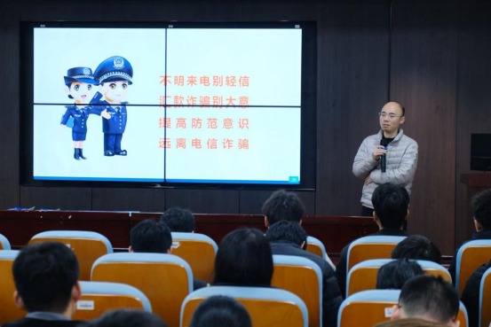 讲座中,邹娜警官一针见血地指出当前电信网络诈骗高发的核心诱因——“一是贪心,二是不甘心”。她聚焦刷单返利、机票退改签、虚假交易、非法贷款、代办信用卡、冒充好友、冒充公检法等高发诈骗类型,通过鲜活生动、通俗易懂的真实案例逐一拆解诈骗套路,重点剖析了刷单返利、虚假购物等学生易受骗类型的作案手法,总结诈骗识别方式,帮助学生快速辨别网络陷阱。结合高校警情案例,她特别提醒,看似轻松的网络小兼职,实则暗藏法律风险,极易让人因贪小利而坠入诈骗深渊。讲座现场,受害人采访视频、骗子作案录音等素材直观揭露电诈细节,引发同学们强烈共鸣,现场互动热烈、反响积极。